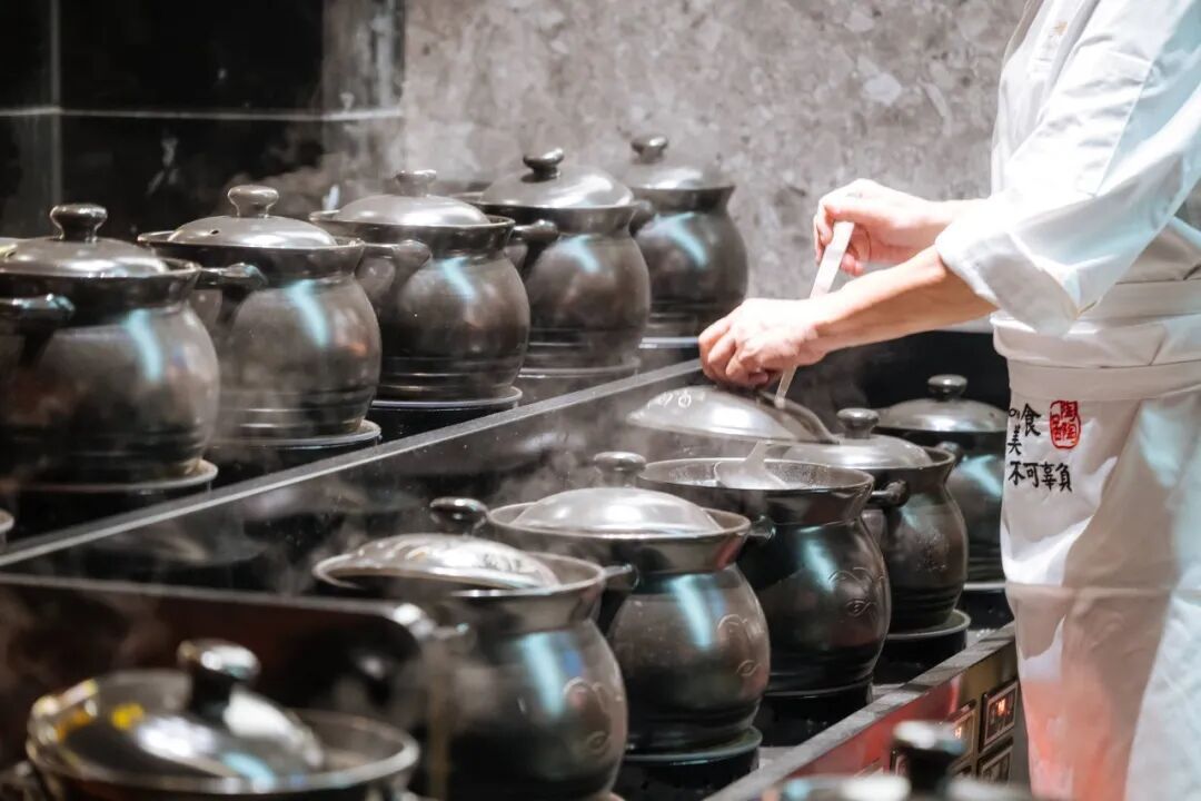 店内设置明档厨房,厨师现场手工制作各式点心;海鲜池供应各种特色生猛海鲜;门店还专门增设了老火靓汤铺,每日新鲜煲制,多款特色靓汤轮流供应,进一步丰富了食客的选择。