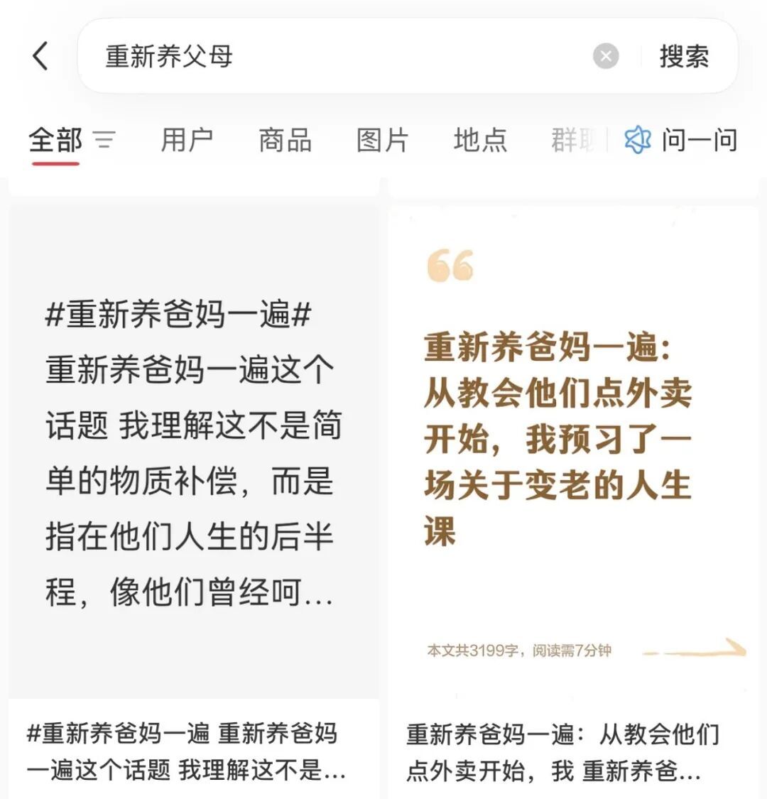 而且,比起孝顺父母,年轻一辈“养育父母”的内涵更为丰富。突破了父母哺育子女反哺的单向路径,对待父母也不是服从还是反抗的非此即彼,试图打破基于伦理和责任的“秩序”感,更柔性和包容地“养”出和父母健康的亲密关系。